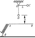如图所示,在同一竖直平面内,一个轻质弹簧静止放于光滑斜面上,一端固定,另一端自由放置,且恰好与水平线AB齐平。一长为L的轻质细线一端固定在O点,另一端系一个质量为m的小球,将细线拉至水平,此时小球在位置C,由静止释放小球,小球到达最低点D时,细绳刚好被拉断, D点到AB的距离为h,之后小球恰好沿斜面方向将弹簧压缩,弹簧的最大压缩量为x.求: