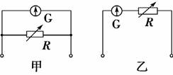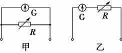 如图所示,甲、乙两个电路都是由一个灵敏电流表G和一个变阻器R组成的,下列说法正确的是( )![]()