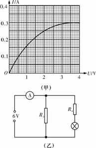 ③由正确实验操作得到的数据描绘出小灯泡的伏安特性曲线如图(甲)所示,将本实验用的小灯泡接入如图(乙)所示的电路,电源电压恒为6V,定值电阻R3=30Ω。电流表A读数为0.45A,此时小灯泡消耗的实际功率为 W。(不计电流表A的内阻)。