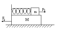 如图所示,物体m与长木板M之间光滑,木板置于光滑水平面上.轻弹簧左端固定在M的左端,右端与m相连.开始时,m和M均静止.现同时对它们施加大小相等、方向相反的水平恒力F1和F2,两物开始运动.以后的过程中,若弹簧的形变始终不超过弹性限度,则m、M和弹簧组成的系统