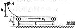 如图所示,一光滑的曲面与长L =" 2" m的水平传送带左端平滑连接,一滑块从曲面上某位置由静止开始下滑,滑块与传送带间的动摩擦因数μ= 0.5.传送带离地面的高度h0 =" 0.8" m。现让滑块从曲面上离传送带高度h1 =" 1.8" m的A处开始下滑,则:![]()