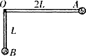 如下图所示,质量分别为2m和3m的两个小球固定在一根直角尺的两端A、B,直角尺的定点O处有光滑的固定转动轴,AO、BO的长分别为2L和L,开始时直角尺的AO部分处于水平位置而B在O的正下方,让该系统由静止开始自由转动,