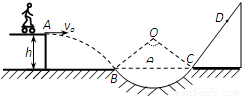 滑板运动是青少年喜爱的一项活动.如图所示,滑板运动员以某一初速度从A点水平离开h=0.8m高的平台,运动员(连同滑板)恰好能无碰撞的从B点沿圆弧切线进入竖直光滑圆弧轨道,然后经C点沿固定斜面向上运动至最高点D.圆弧轨道的半径为1m,B、C为圆弧的两端点,其连线水平,圆弧对应圆心角θ=106°,斜面与圆弧相切于C点.已知滑板与斜面间的动摩擦因数为μ=