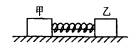 水平面上甲、乙两物体之间因有线系住,所以将一根弹簧挤紧(图),甲、乙两物体质量之比是2:1,它们与水平面之间动摩擦因数之比是1:2.现将细线烧断,甲、乙从静止起被弹开,则 [ ]