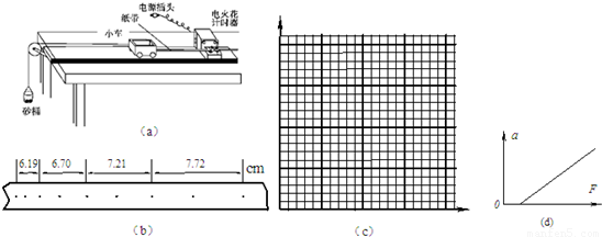 根据上表数据,为直观反映F不变时a与m的关系,请在图(c)方格坐标纸中选择恰当变量建立坐标系,并作出相应的图线。根据所作出的图线,可以得出的结论是
