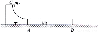 1=2.0kg的木板AB静止在水平面上,木板的左侧有一个固定的半径R=0.60m的四分之一圆弧形轨道,轨道末端的切线水平,轨道与木板靠在一起,且末端高度与木板高度相同.现将质量m