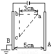如图所示,在匀强电场中有a,b,c三点,这三点连线组成一个直角三角形,ab边和电场线平行,长为3cm,a点离A板1cm,电源电压为2V,B板接地。问: