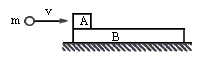 如下图所示,在光滑水平面上叠放着质量为mA与mB的物体A和B,A与B间的动摩擦因数为μ,质量为m的小球以水平速度v射向A,以
