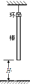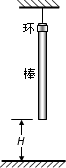 如图所示,一轻绳吊着粗细均匀的棒,棒下端离地面高H,上端套着一个细环.棒和环的质量均为m,相互间最大静摩擦力等于滑动摩擦力,大小为kmg(k>1).断开轻绳,棒和环自由下落.假设棒足够长,与地面发生碰撞时,触地时间极短,无动能损失.棒在整个运动过程中始终保持竖直,空气阻力不计.则