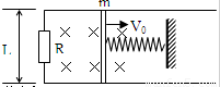 (10分)如图所示,固定的水平光滑金属导轨,间距为L,左端接有阻值为R的电阻,处在方向竖直向下、磁感应强度为B的匀强磁场中,质量为m的导体棒与固定弹簧相连,放在导轨上,导轨与导体棒的电阻均可忽略.初始时刻,弹簧恰处于自然长度,导体棒具有水平向右的初速度v0.在沿导轨往复运动的过程中,导体棒始终与导轨垂直并保持良好接触.