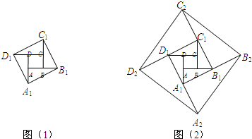 把正方形A1B1C1D1边长按原法延长一倍得到新正方形A2B2C2D2(如图(2));以此下去…,