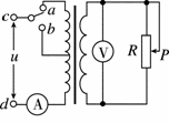 (2012·乌鲁木齐市高三第二次测试)如图所示,理想变压器原、副线圈的匝数比为10∶1,b是原线圈的中心接头,电压表V和电流表A均为理想电表.从某时刻开始在原线圈c、d两端加上交变电压,其瞬时值表达式为u=220