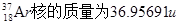 雷蒙德·戴维斯因研究来自太阳的电子中微子(νe)而获得了2002年度诺贝尔物理学奖。他探测中微子所用的探测器的主体是一个储满615t四氯乙烯(C2Cl4)溶液的巨桶。电子中微子可以将一个氯核变为一个氩核,核反应方程式为