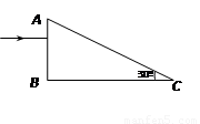 如图所示,一条光线从空气垂直射到直角玻璃三棱镜的界面AB上,棱镜材料的折射率为1.414,这条光线从BC边射出棱镜后的光线与界面BC的夹角为 ![]()