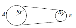 如图所示的皮带传动装置,主动轮1的半径与从动轮2的半径之比R1: R2 = 2:1,A、B 分别是两轮边缘上的点,假定皮带不打滑,则下列说法正确的是 ![]()