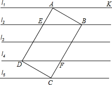 (2013•赣州模拟)如图,已知直线l1∥l2∥l3∥l4∥l5,相邻两平行线间的距离都为6cm;现把一张矩形贺年卡放在上面,贺年卡的四顶点A、B、C、D恰好落在直线l1、l2、l5、l4上,直线l2与边AD的交点为E,直线l4与边BC的交点为F,四边形BFDE恰好为菱形.