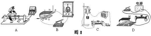 如图8所示,是我们学习电磁现象过程中做过的几个实验,其中能反映发电机工作原理的是