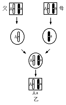 (2)由图乙可知生物体体细胞中每一对染色体,都是一条来自________,另一条来自________,从而使后代具有________的遗传物质。图中女儿的基因A来自________,基因a来自________。