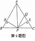 示,在△ABC中,AQ=PQ,PR=PS,PR⊥AB于R,PS⊥AC于S,则三个结论①AS=AR;②QP∥AR;③△BPR≌△QPS中( )
