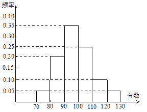 某校高三文科分为四个班.高三数学调研测试后, 随机地在各班抽取部分学生进行测试成绩统计,各班被抽取的学生人数恰好成等差数列,人数最少的班被抽取了22人.抽取出来的所有学生的测试成绩统计结果的频率分布条形图如下图所示,其中120~130(包括120分但不包括130分)的频率为0.05,此分数段的人数为5人.