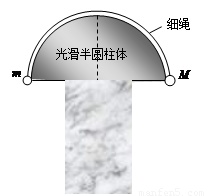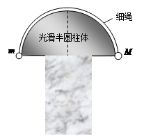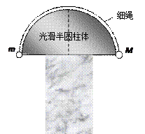 如图所示,两物体的质量分别为M和m(M > m),用细绳连接后跨接在半径为R的固定光滑半圆柱体上(离地面有足够高的距离),两物体刚好位于其水平直径的两端,释放后它们由静止开始运动。求: