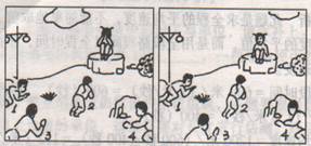 右图是表示游戏“谁在动”中的两个情景,坐在石块上的小孩子先用手蒙住眼睛后放开手发现 号和 号的小朋友作了机械运动。她是以 为参照物来判断的。