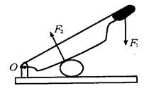 如图所示,请画出铡刀铡东西时动力F1的力臂Ll和阻力F2的力臂L2。