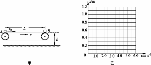 (3)若传送带的速度v可在0~5.0m/s之间调节,行李箱仍以v0的水平初速度从A端滑上传送带,且行李箱滑到B端均能水平抛出。请你在图乙中作出行李箱从B端水平抛出到落地点的水平距离x与传送带速度v的关系图象。(要求写出作图数据的分析过程)