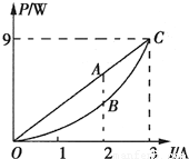 随电流I变化的图线,抛物线OBC为同一直流电源内部热功率Pr随电流I变化的图线,若A、B对应的横坐标为2A,那么线段AB表示的输出功率及对应的外电阻是