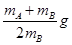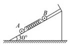 如图所示,A、B两小球分别连在弹簧两端,B端用细线固定在倾角为30°的光滑斜面上。A、B两小球的质量分别为mA、mB,重力加速度为g,若不计弹簧质量,在线被剪断瞬间,A、B两球的加速度分别为( )![]()