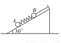 如图所示,A、B两小球分别连在弹簧两端,质量分别为MA和MB,B端用细线固定在倾角为30°的光滑斜面上,若不计弹簧质量,在线被剪断瞬间,A、B两球的加速度分别为( )![]()