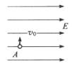 一个带正电的微粒以竖直向上的速度由A点进入一水平方向的匀强电场,如图所示。考虑到带电粒子所受的重力,则带电微粒在竖直方向的分运动是________运动,在水平方向的分运动是___________。若微粒的质量为m、电量为q初速度为v0,电场强度为E,则微粒速度方向变为水平方向时,其位移的大小为_______。