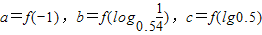 已知偶函数f(x)在[0,2]内单调递减,若,则a,b,c之间的大小关系为________.