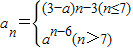 数列{an}满足:且{an}是递增数列,则实数a的范围是( )