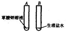 第一步:在A、B试管中分别加入等量的草酸钾溶液和生理盐水(见下图)