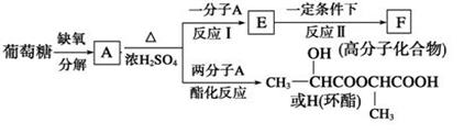 (10分)葡萄糖是人类的营养素,在体内富氧条件下被氧化生成二氧化碳和水,在缺氧条件下则生成一种有机酸A。将A进行如下图所示的反应。![]()