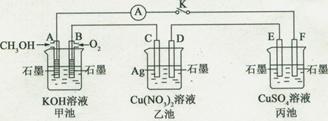 (10分)某兴趣小组的同学用下图所示装置研究有关电化学的问题(甲、乙、丙三池中