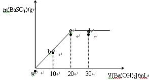 常温下,向0.25 mol·L-1的硫酸溶液中逐滴加入物质的量浓度相同的氢氧化钡溶液,生成沉淀的量与加入氢氧化钡溶液的体积关系如图所示,a、b、c、d分别表示实验不同时刻的溶液,下列有关说法中不正确的是 ( )。![]()