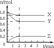 (6分)(1)某温度下,在一密闭容器中,X、Y、Z三种气体的物质的量随时间的变化曲线如图所示。分析有关数据,写出X、Y、Z反应的化学方程式 。![]()