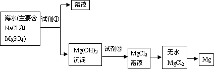 (1)为了使镁离子沉淀下来,加入的足量试剂①是________(填化学式).
