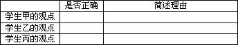请你评价三个学生提出的观点是否正确(填“是”或“否”),并简述理由。