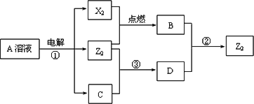 (3)D是很多漂白剂中含有的有效成分,这些产品不能与洁厕灵(含有有机酸和无机酸)一起使用,其原因就是在常温时能发生与反应②相似的反应.某校的学生在实验室利用反应②的原理来制备纯净、干燥的Z2,仪器装置下图所示(夹持固定装置的仪器已略去).