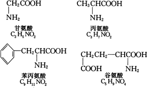 (10分)今有一个化合物,其分子式为C55H70O19N10,已知将它彻底水解后只得到下列4种氨基酸,如下图所示。