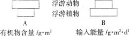 生态学家在某一时刻调查了每平方米水域中全部浮游植物和浮游动物含有的有机物的量,如图A所示;他们又调查了每平方米水域一天当中分别输入到浮游植物和浮游动物中的总能量,如图B所示。根据调查结果,你认为下列叙述正确的是