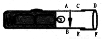 如图是小阳制作的多用途手电筒,AB处是可插入胶片的小插口,CD、EF是可左右伸缩的套筒,DF处装入凸透镜。当手电简先作照明用时,调节套筒,使灯泡灯丝处于________位置,射出平行光线;在此基础上,作幻灯机使用时,在AB处插入幻灯片,接下来应把套筒向________ (填“左”或“右”)移动,才能在前方屏幕上观察到倒立放大的实像。请你再动脑思考指出该手电筒另外一项不同的功能:________________________________。![]()