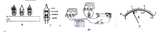 小明在欣赏圣诞树上的小彩灯时发现,各小彩灯的连接方式为串联,当其中一只灯丝熔断,其他彩灯却仍能发光,如图甲,这是为什么呢?他仔细观察灯泡的构造如图乙,查阅得知细金属丝表面涂有绝缘物质;取一只完好的彩灯,按图丙电路进行实验,电源电压为7.5伏,数据及现象记录如下表:![]()