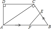 如图,在直角梯形ABCD中,∠D=90°,AB=10cm,BC=6cm,AB∥CD,AC⊥BC,F点以2cm/s的速度在线段AB上由A向B匀速运动,E点同时以1cm/s的速度在线段BC上由B向C匀速运动,设运动的时间为t(0<t<5).