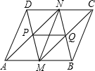 平行四边形ABCD中,M、N分别是AB、CD的中点,AN与DM相交于点P,BN与CM相交于点Q.试说明PQ与MN互相平分.
