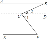 如图,AB∥EF,在AB、EF之间,且在BF的左侧任意选取一点C,试猜想∠B、∠F、∠C之间的关系,试加以说明.