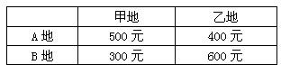 22、大桥局在A、B两地有闲置的挖土机16台和12台,现要运往甲、乙两地,其中甲地15台,乙地13台,从A、B两地分别运送一台挖土机到甲、乙两地的费用如下表: